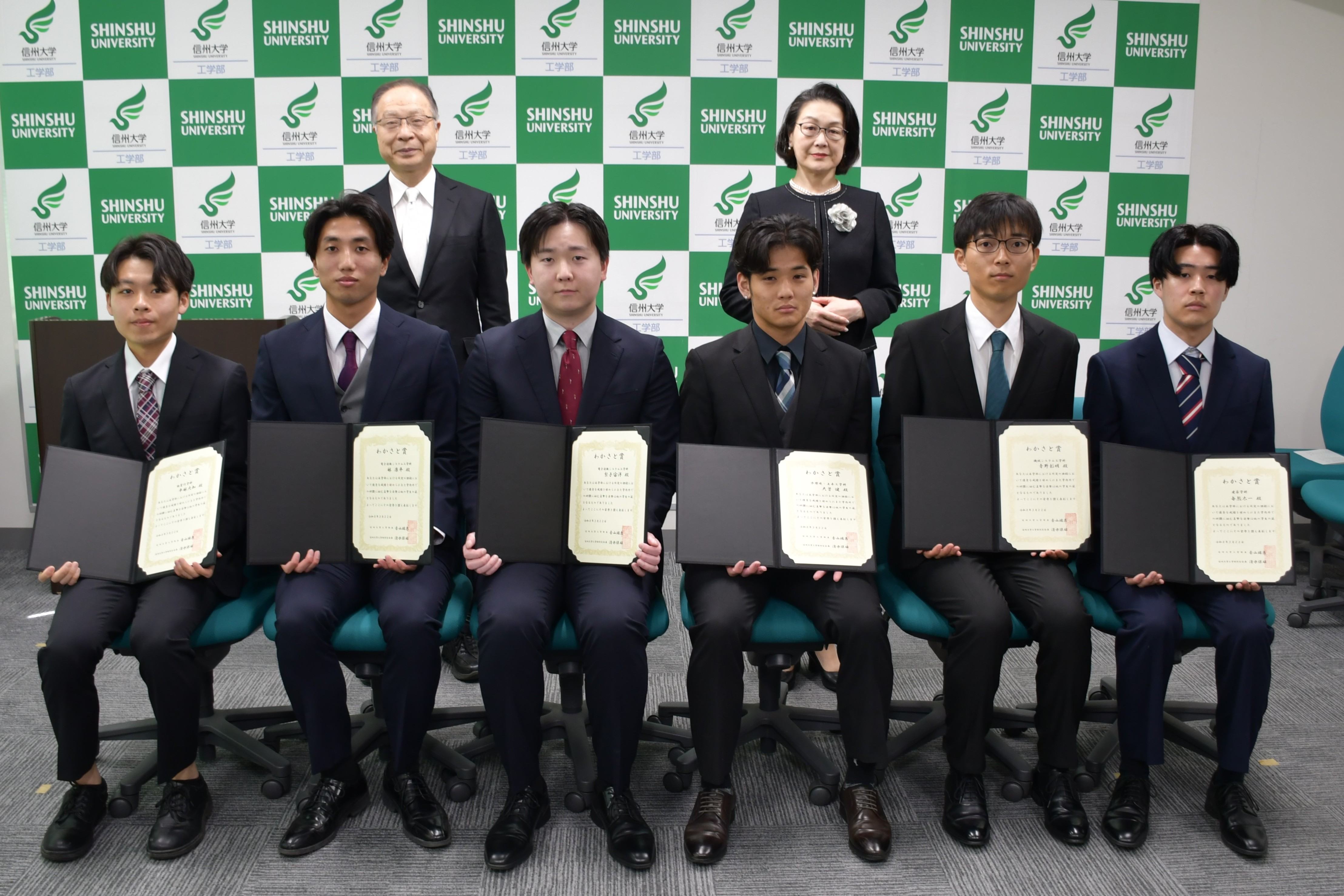 ◆◆◆「わかさと賞」は、工学部卒業予定者のうち学業等において研鑽に励み、他の学生の範となった者を表彰し、その栄誉を讃えるとともに、在学生の修学意欲を高め、励みとなることを目的とし、平成28年度に信州大学工学部同窓会により創設されました。令和3年度より、学生数の多い電子情報システム工学科には2名に授与することになりました。 ◆◆◆